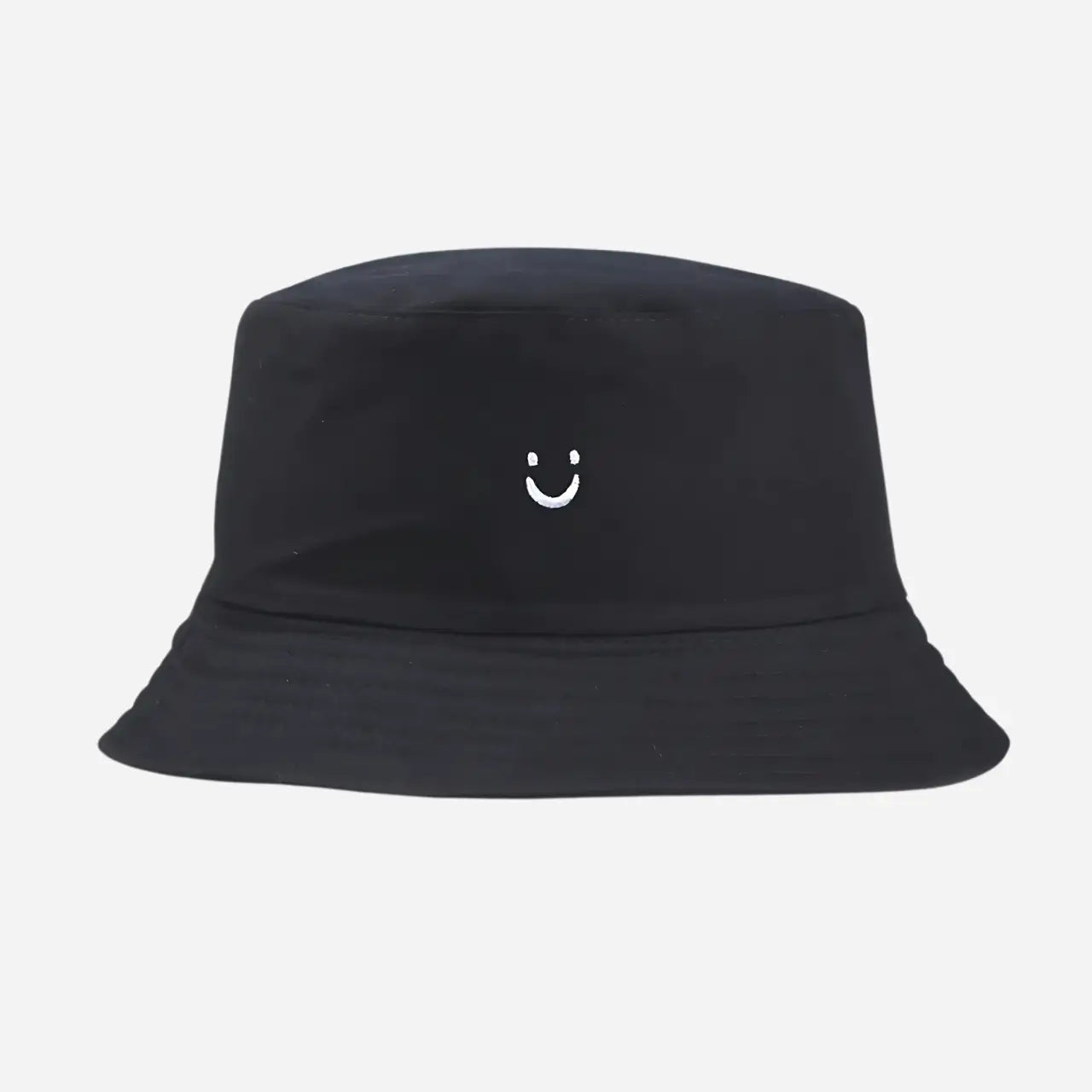 A comfy, everyday bucket hat with a clean look and a little smile.